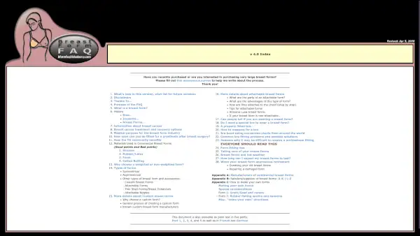 Anyway! Here’s some valuable advice for any crossdressers or transgendered folk looking into buying breast forms. It may not have been updated since 2008, but the principle’s the same.